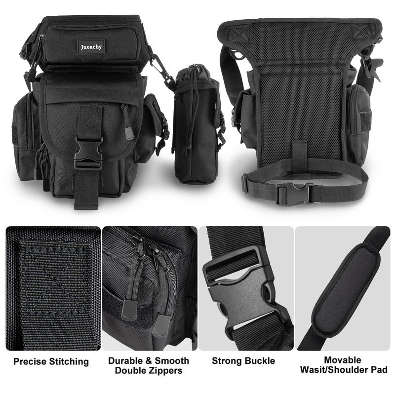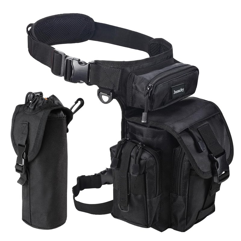 Jueachy Drop Leg Bag for Men Tactical Metal Detecting Thigh Pack with Water Bottle Pouch Black