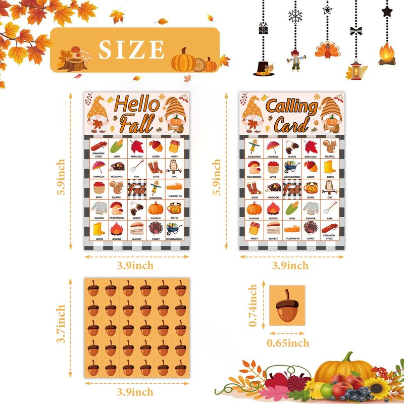 JUESMOS Fall Game Gnome Bingo Game Cards 24 Players Fall Bingo Game for Adults Autumn Harvest Fall Festival Party Games for School Classroom Family Activities Thanksgiving Party Favors Supplies