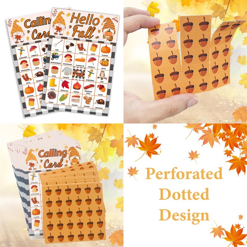 - High Quality Fall Festival Games Cards: All of the autumn bingo cards are made of thick cardboard, durable and reusable. The paper material is also safe for adults to use. There are perforated dotted lines of chip sheets, easy for you to cut.