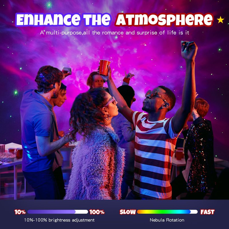 - [Versatile Cosmic Ambiance] Elevate any space with celestial charm. From adjustable night lighting to enhancing room decor, this multifunctional projector serves as an ideal companion for bedrooms, living rooms, cars, gaming setups, study areas, and various other settings, amplifying ambiance wherever it goes.