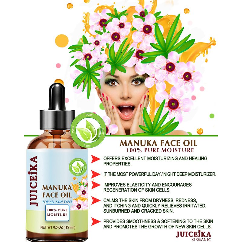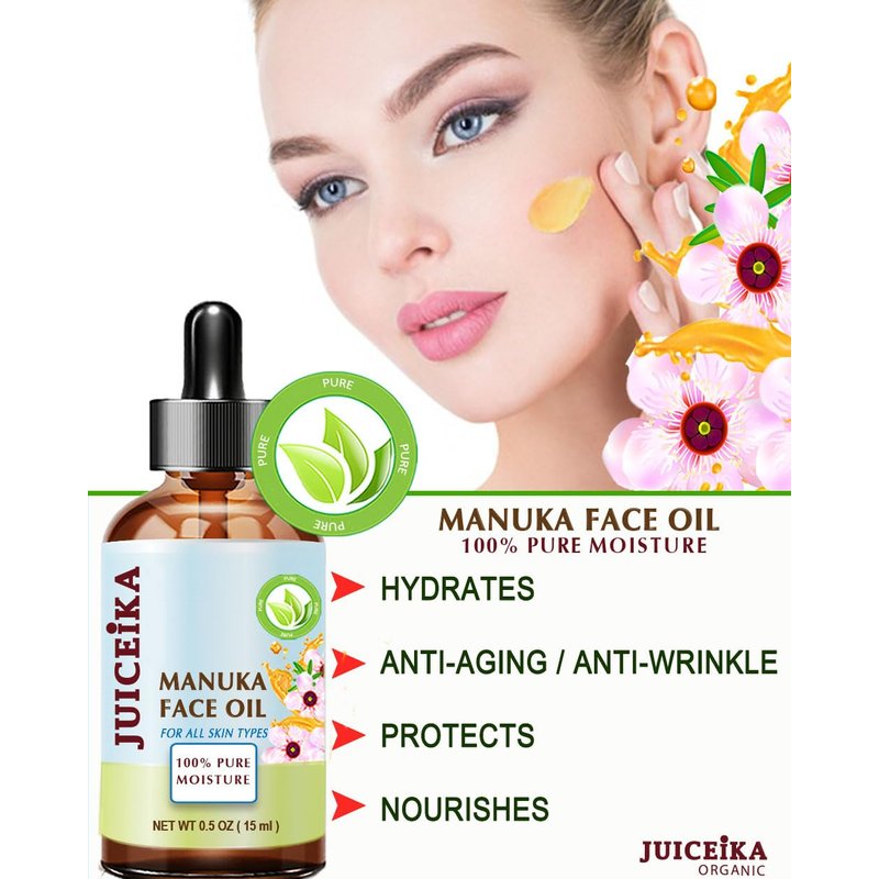 Juiceika MANUKA OIL Australian 100% Pure. Face Moisturizer Anti-Aging Face Oil for Face, Skin, Hair, Lip and Nail Care 0.5 Fl.Oz. - 15 ml