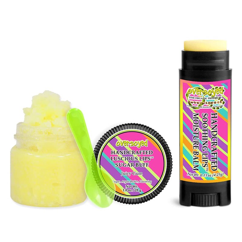 Juicy Gum Soothing & Luscious Lips by OverSoyed Exfoliator & Chapped Lip Repair Lip Care Combo | Artisan Handcrafted to Order Fruity Orange Lemon Pineapple Banana Cinnamon Mint Flavored Exfoliating Sugar Lip Scrub & Lip Moisturizer Balm Gift Set