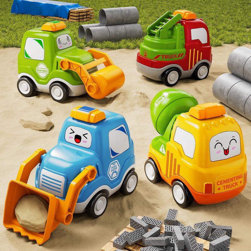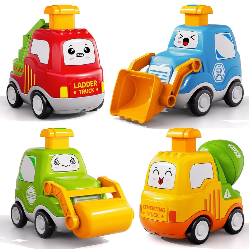 - Cartoon Toy Cars: Our engineering car toy features 4 cute mini car with lovely appearance: push dozer, ladder truck, road rollers and cementing truck. The pretty design and colors help encourage your kids to recognize colors of toddler girl toys 1-2.