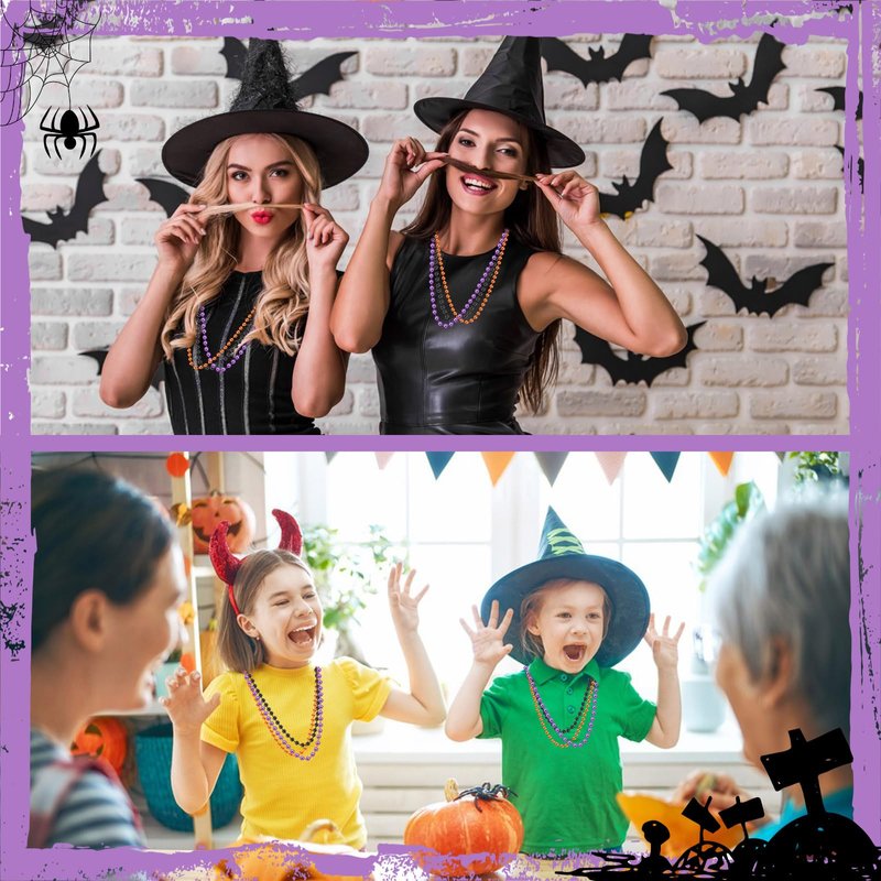 - What Will You Receive - You will receive 30 bead necklace, this Halloween necklace set contains 30 beads necklace in black, purple and orange,10 for each color, give you different wearing experience.When Halloween comes,a beautiful Halloween bead necklace is a must-have, which makes you stand out from the crowd