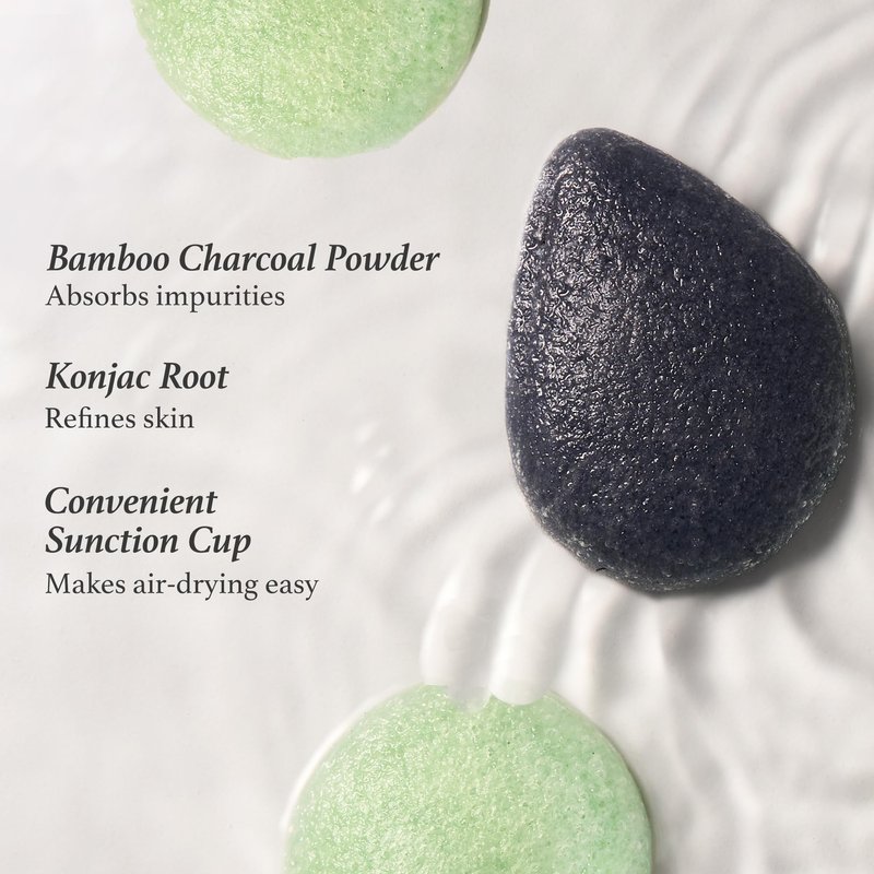 - CHARCOAL KONJAC SPONGE: Who says exfoliating has to be harsh for your skin? This super-soft, all-natural facial exfoliating sponge is made from the fibrous root of the Konjac plant and enriched with skin-clarifying charcoal.