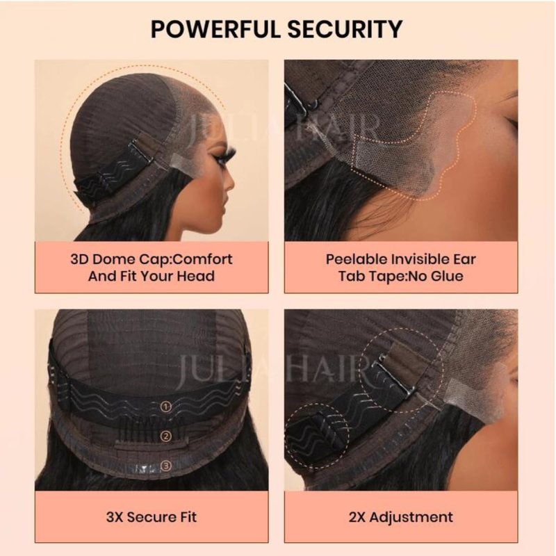 - Upgrade Pre Cut Lace Glueless Wigs: Glueless Frontal Wig With Breathable Cap. New 3d Dome Breathable Cap Full Elastic And Comfortable, Peelable Invisible Ear Tab Tape And Elastic Band To Ensure Wig Stays In Place All Day Long, Adjustable Belt And Two-Position Removable Buckle Can Promise The Wig Suits Anyone.