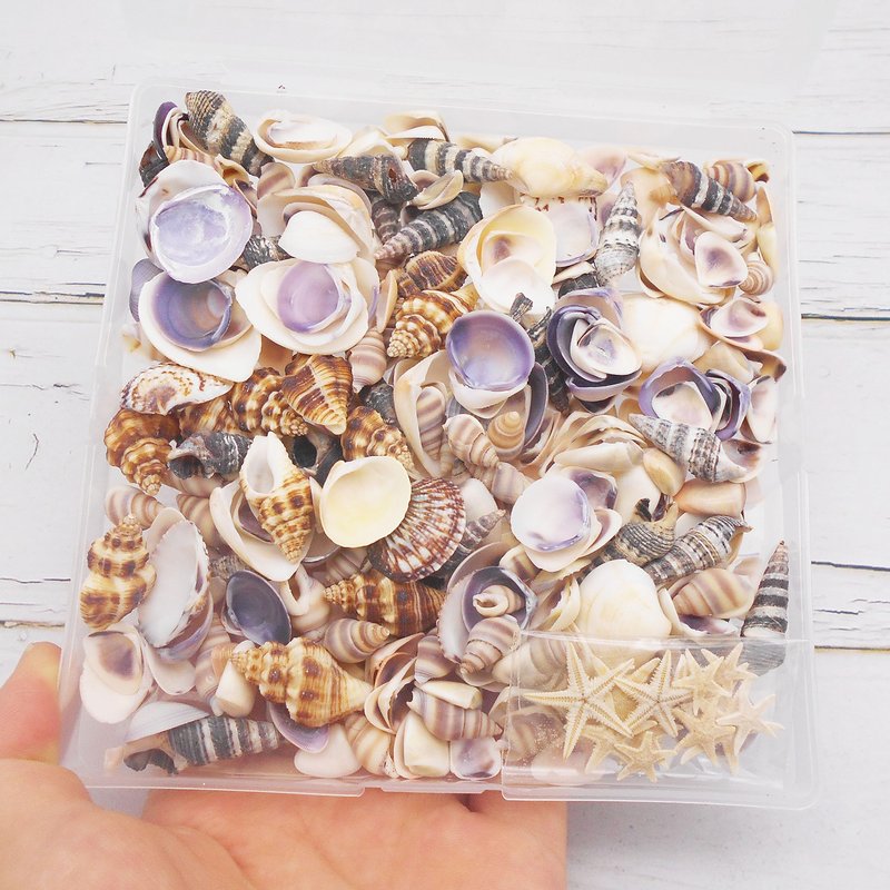 - Quantity:You will receive about 200 pcs in total, which includes small conches and shells mostly,with approx 150-200 pcs shells and 10pcs starfishes, they are well packed in a plastic box.
