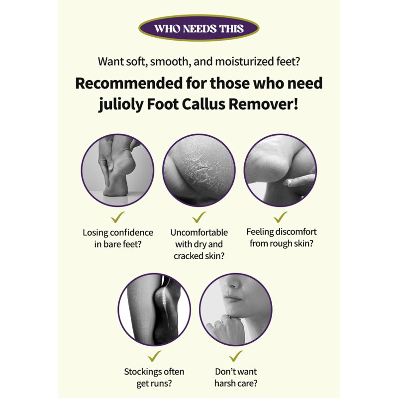 Julioly’s Foot Callus Remover Home Care Set is the perfect solution for effectively removing calluses and nurturing healthy, smooth feet. This set includes a premium stainless steel foot file and a professional exfoliating serum, designed to safely and gently treat dry or dead skin.