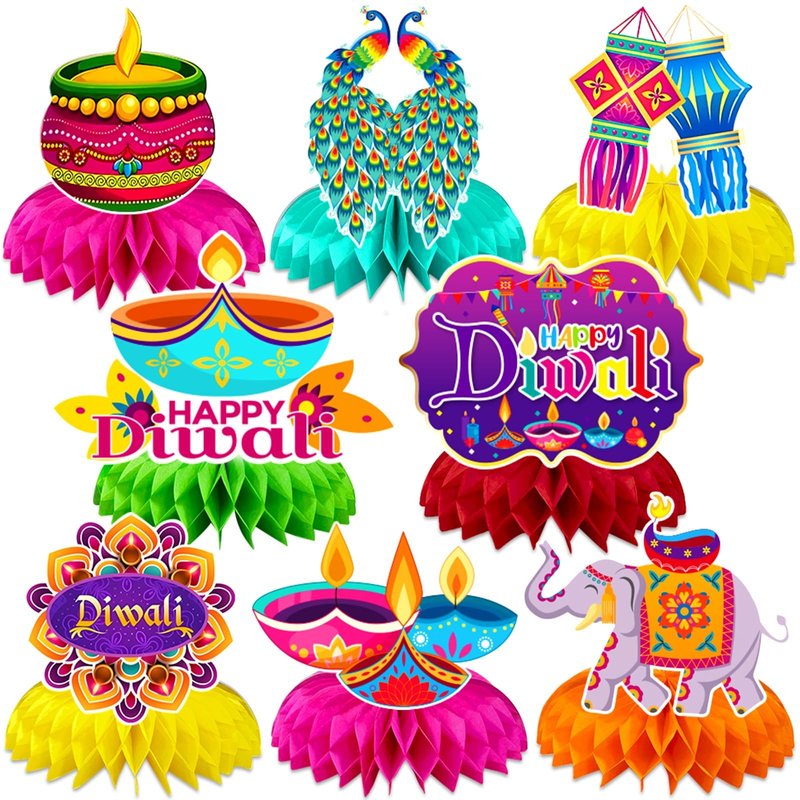 JULMELON 8PCS Diwali Party Decorations Honeycomb Centerpiece, 3D Double Sided Happy Diwali Centerpiece Table Decorations Table Toppers for Home Indian Diwali Festival of Lights Party Favors Supplies