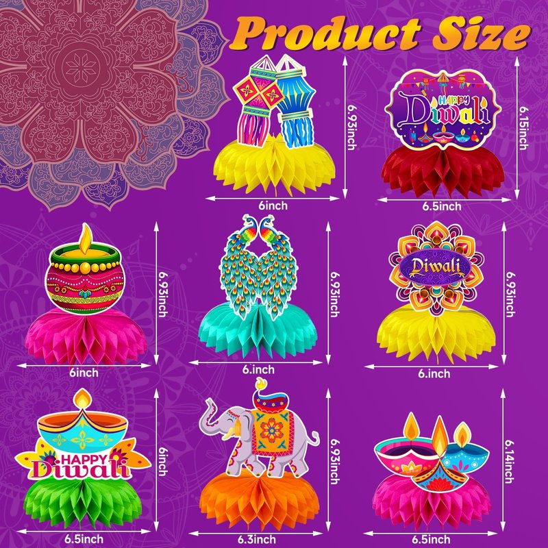 - Package Content: You will receive 8 pieces Diwali decorations honeycomb centerpieces, enough to meet your holiday decoration needs, and different patterns can be matched according to your own preferences and needs, adding a rich holiday atmosphere to your Diwali party