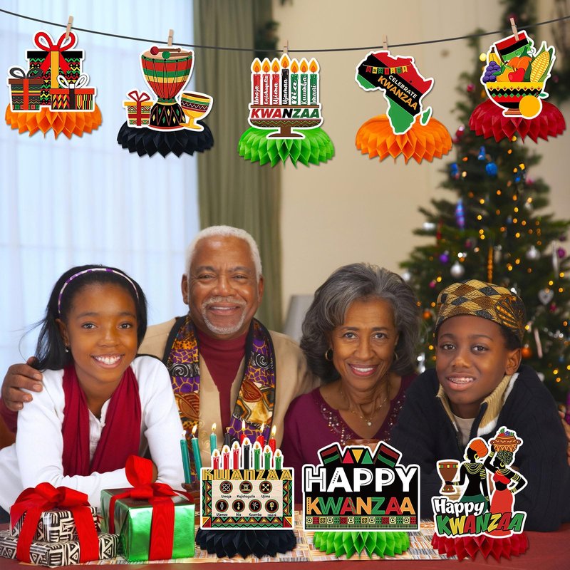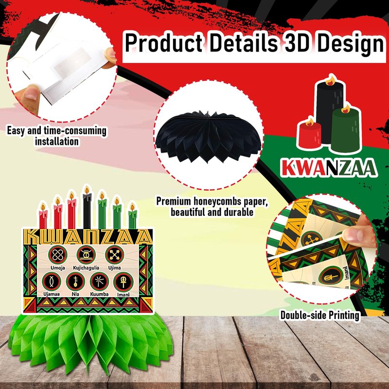 - Package Content: You will receive 8 styles of Kwanzaa table decorations honeycomb centerpieces, enough to meet your holiday decoration needs. Different patterns can be matched according to your own preferences and needs, adding a rich holiday atmosphere to your Kwanzaa party