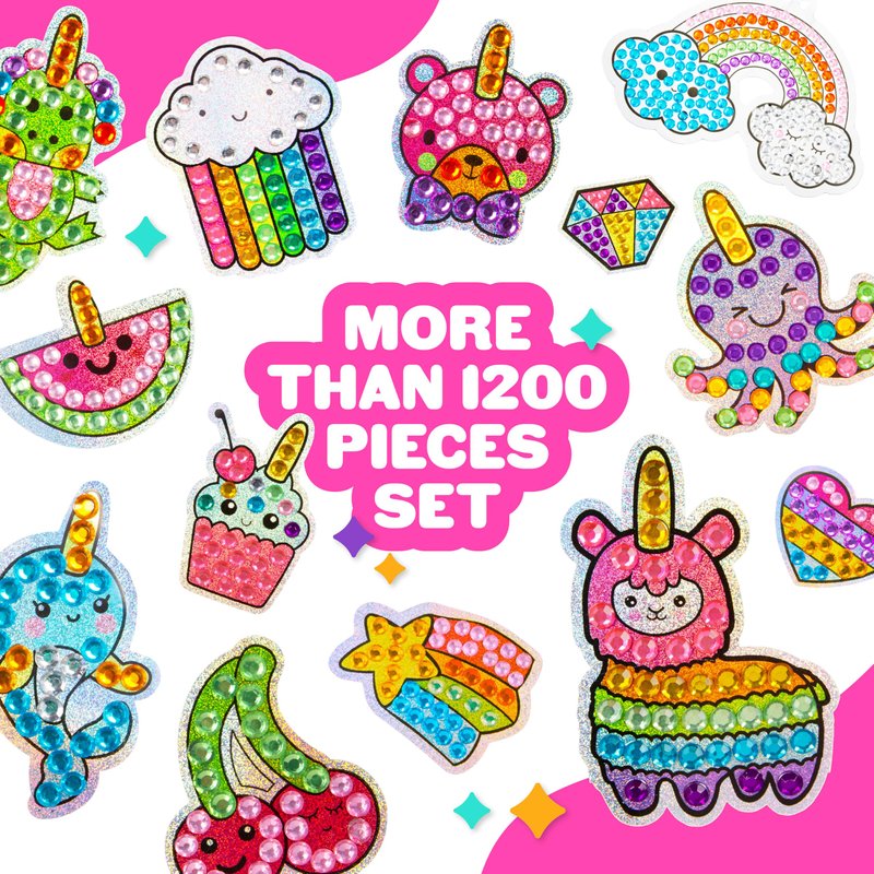 Jumbo Gem Art Diamond Painting Kit - 1200+ Pcs - Make Your Own Stickers, Keychains, Suncatchers, Magnets - Arts and Crafts Kits for Girls Ages 6+