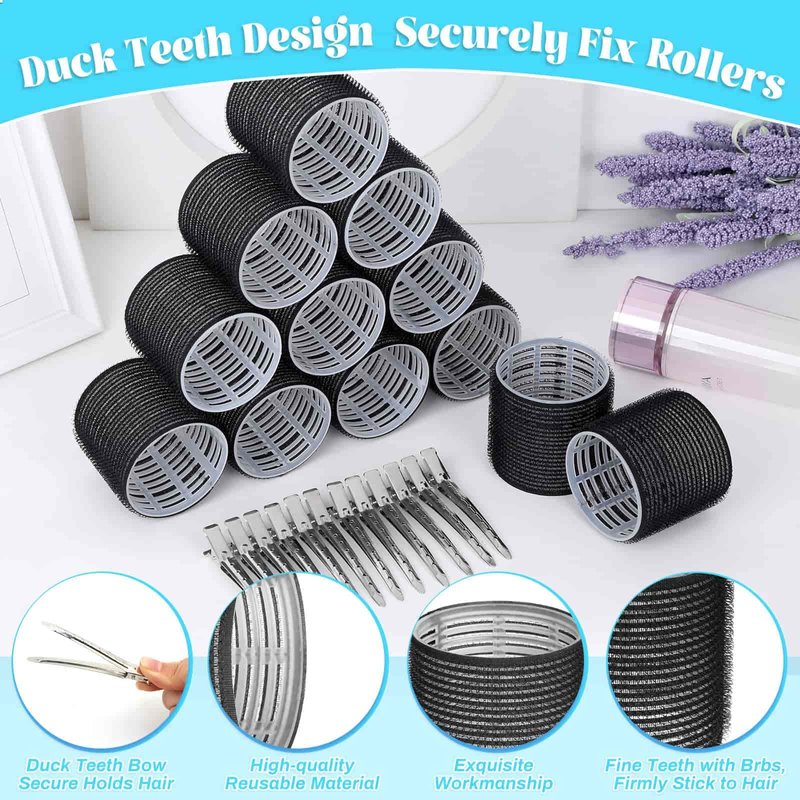 - WHAT YOU WILL GET - This hair curlers set comes with 12pcs jumbo hair rollers and 12pcs stainless steel duck teeth bows hair clips. Great hair roller set for long hair. NOT suitable for short hair, fine hair, or very hard hair conditions. Attention Please: The hair clips are well packed inside the hair rollers (Needs to be unpacked to see the clips inside). If you do not find it please feel free to contact us