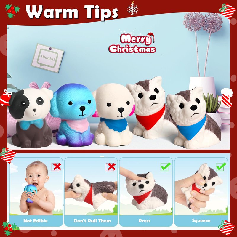 - Squishies Dog Feature: Kawaii Cute & Soft Squishies & Slowing Rising & Scented & Flexible.
