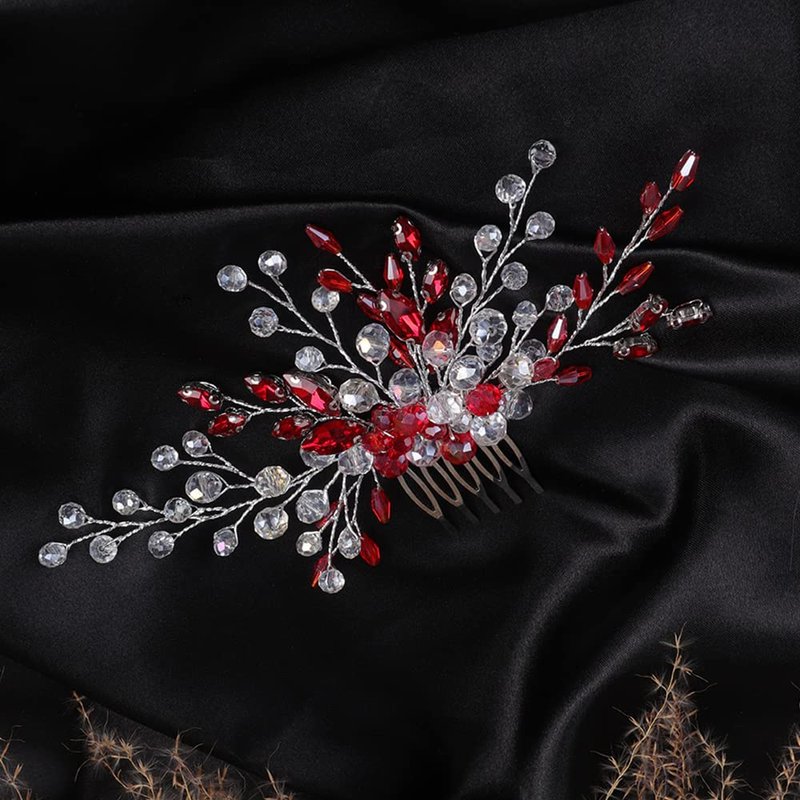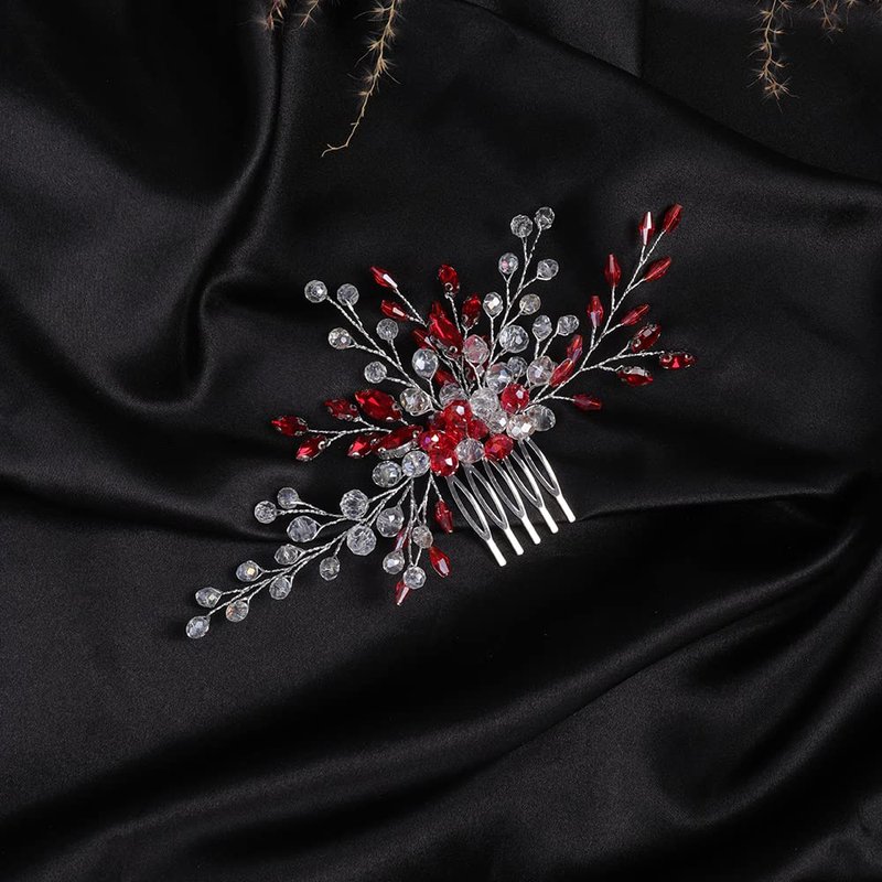 Jumwrit Bridal Hair Comb Red Rhinestone Crystal Wedding Hairpiece for Bride Bridesmaid Dainty Bridal Hair Accessories for Women Girls