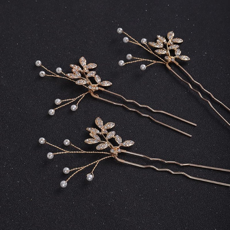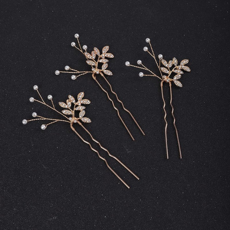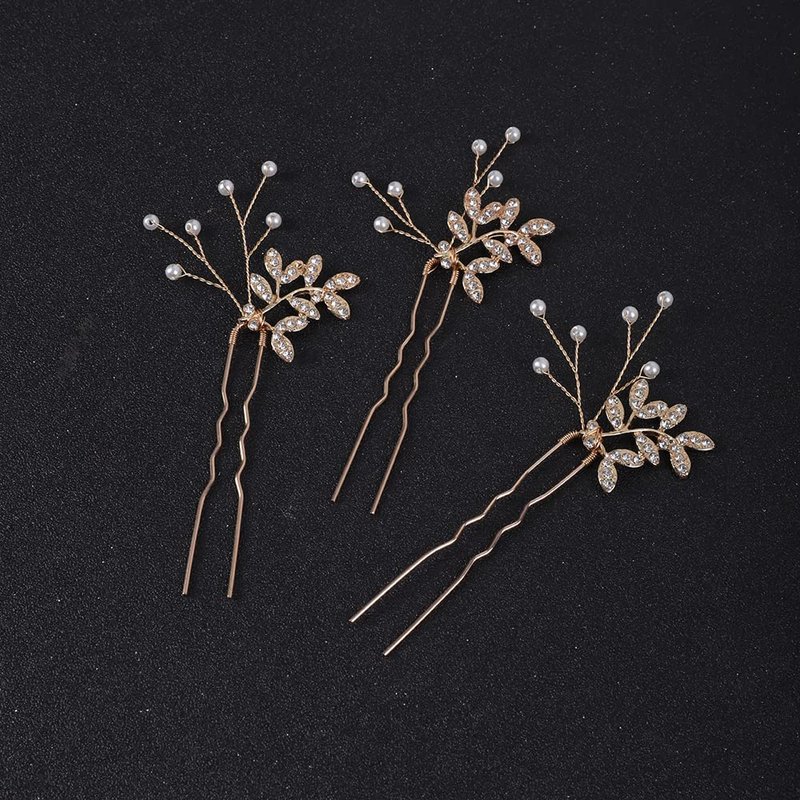 Jumwrit Bride Pearl Crystal Hair Pins Wedding Hair Pins for Bridesmaids Handmade Pearl Hair Pins 3Pcs Bridal Leaf Headpieces Wedding Hair Accessories for Women Girls(Gold)
