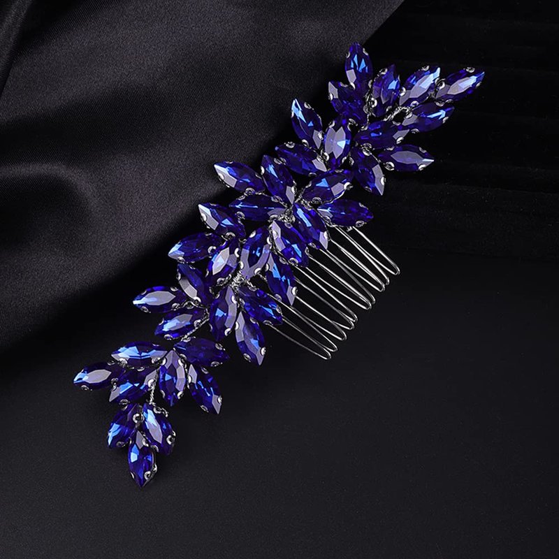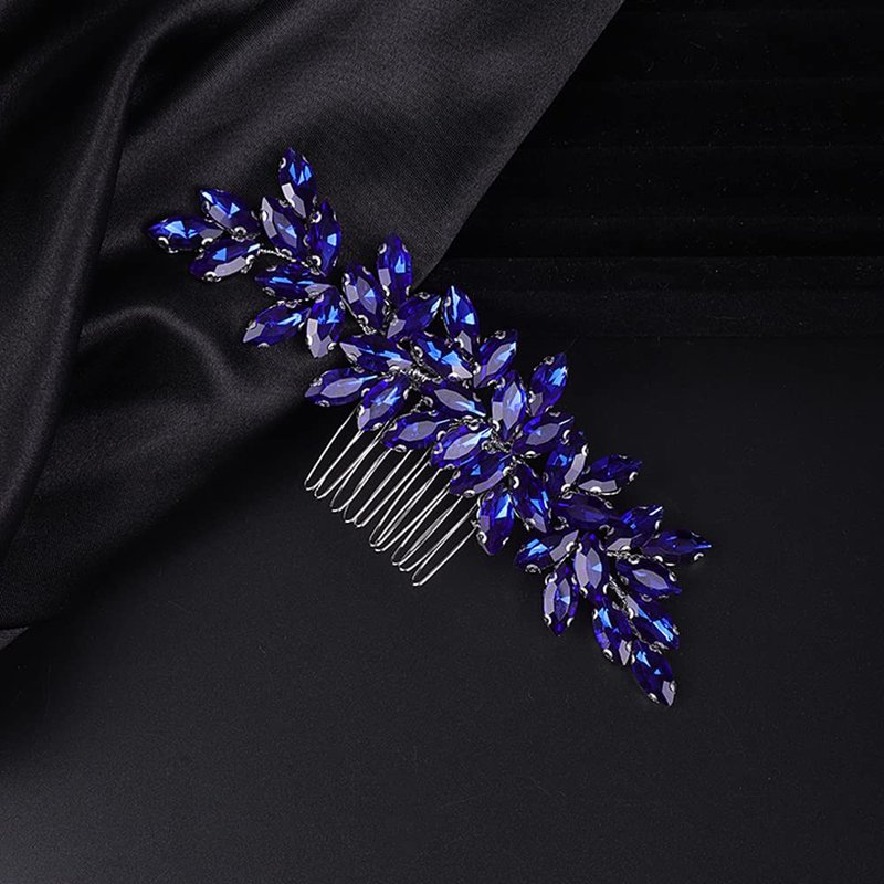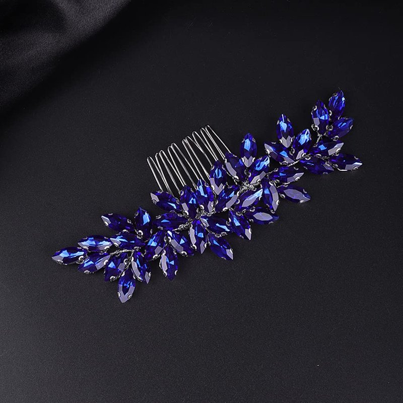 Jumwrit Bride Wedding Hair Comb Rhinestone Bridal Hair Comb Wedding Headpiece Handmade Hair Accessories for Bridesmaid Women Girls(Blue)