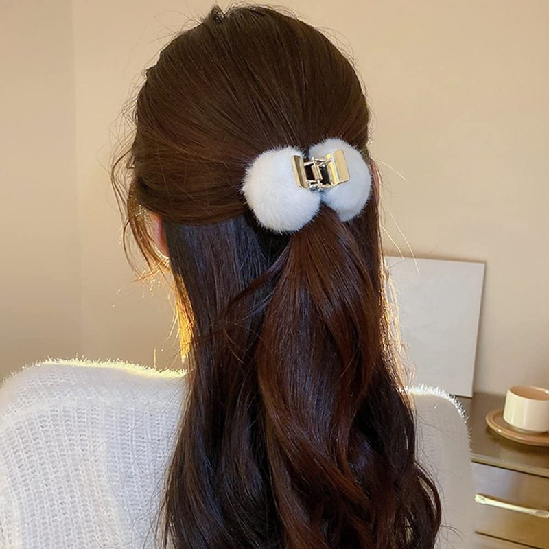 Jumwrit Furry Hair Claw Clip Small High Ponytail Holder Hair Clip Strong Hold Solid Color Hair Barrette Dainty Copper Hairpin Clamp Cute Hair Styling Accessories for Women Girls(White)