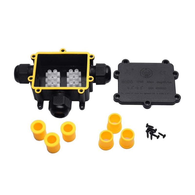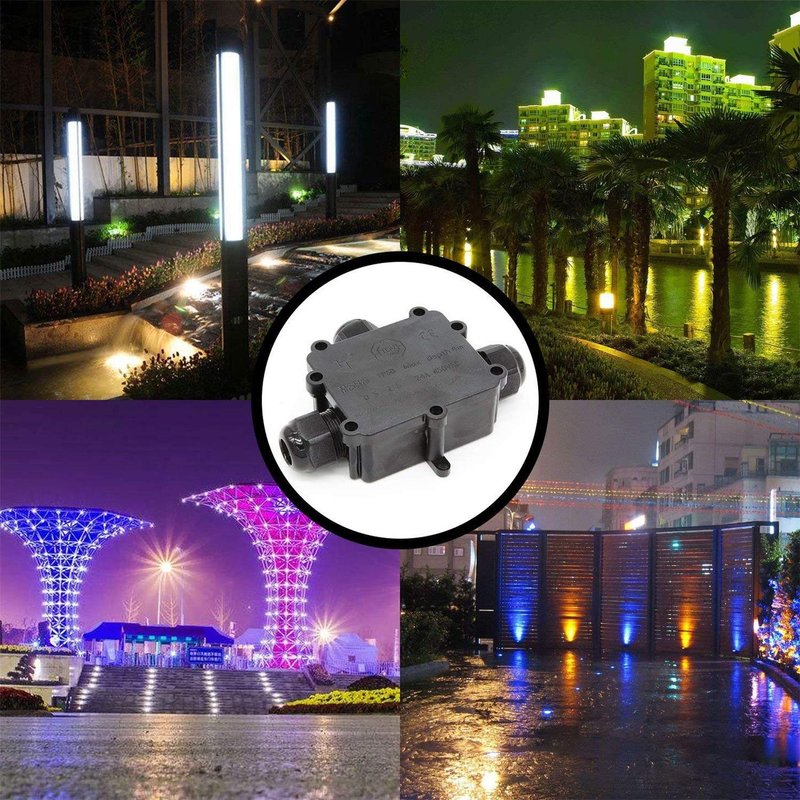 Technical Specifications: Products name :outdoor waterproof junction box Wire Connect Type: 3 way Material: PP plastic Color: Black Mating connector: 3 xM25 Cable Range : 4-8mm / 8-12mm / 10-14mm Supply voltage: 24A / 450V Waterproof level : IP68 Dimensions: 13.8*10.5*3.5 CM Junction Box Outdoor IP68 Waterproof 3-Way Line M25 Cable Connector Wire Range 4-8mm or 8-12mm or 10-14mm Outdoor Power Cord External Sleeve Coupler Protection 1. Suitable for LED billboards, LED tunnel lights, LED Road landscape lighting, LED outdoor display, LED garden lights, garden spike light and so on. 2. Further applications in coastal, river, sea or underwater engineering, underground engineering, mining engineering, solar-wind power, solar water heaters, various machinery and equipment. Package 1 x 3-pole waterproof junction box