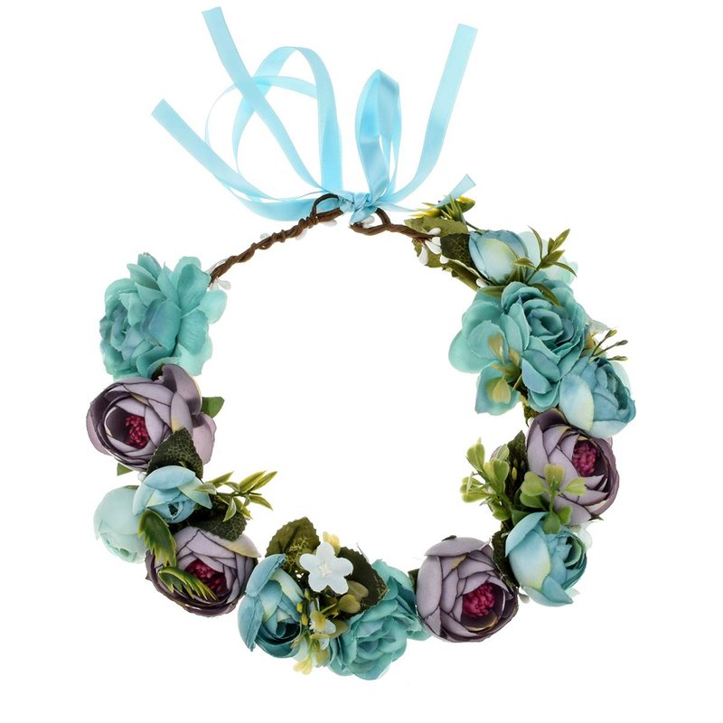 June Bloomy Women Rose Floral Crown Hair Wreath Leave Flower Headband with Adjustable Ribbon