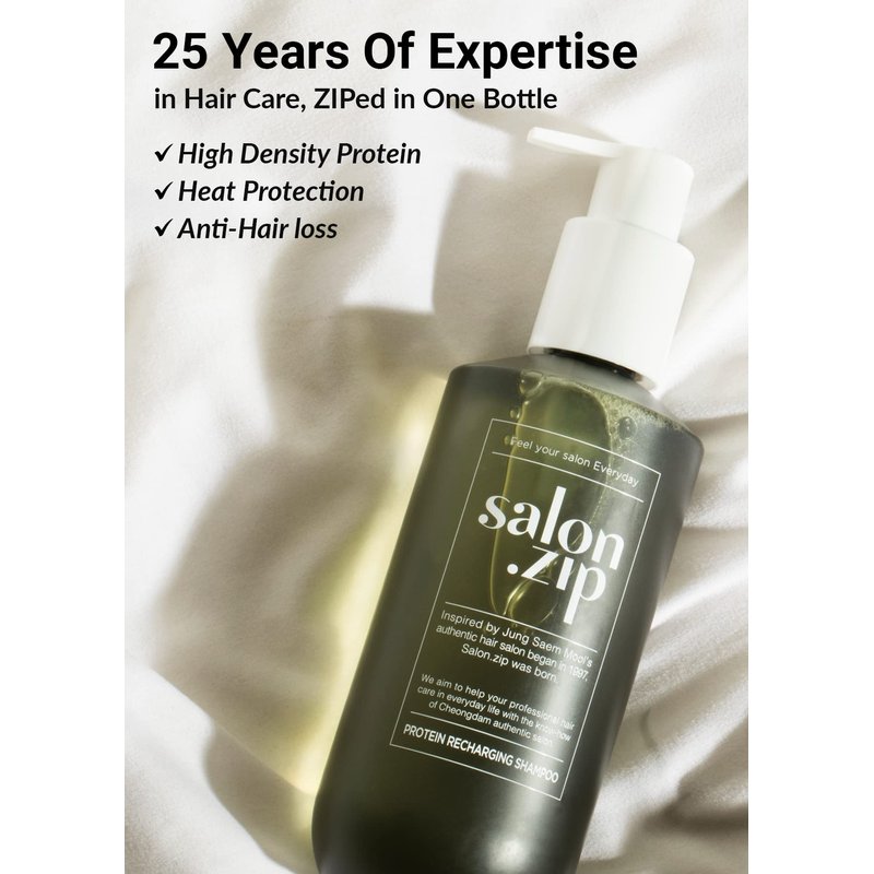 JUNG SAEM MOOL OFFICIAL Salon.ZIP Protein Recharging Shampoo, 14.1 oz (400 g) | Hair Protein, Damaged Hair, Damage Care, Thickening Shampoo for fine hair, Hair Care, Korean Shampoo