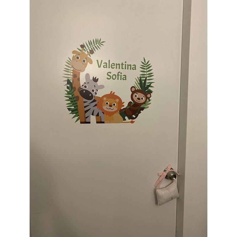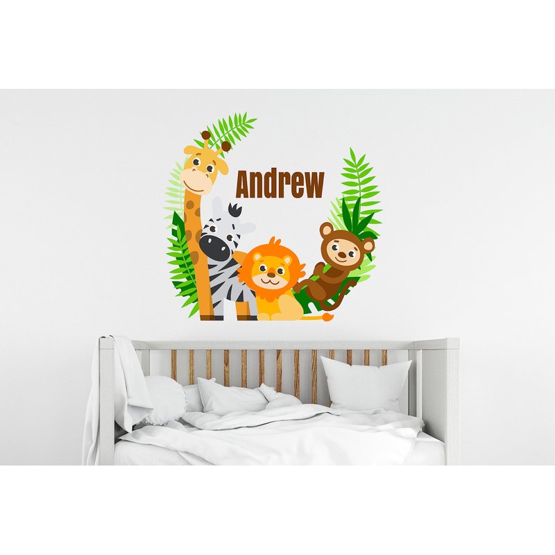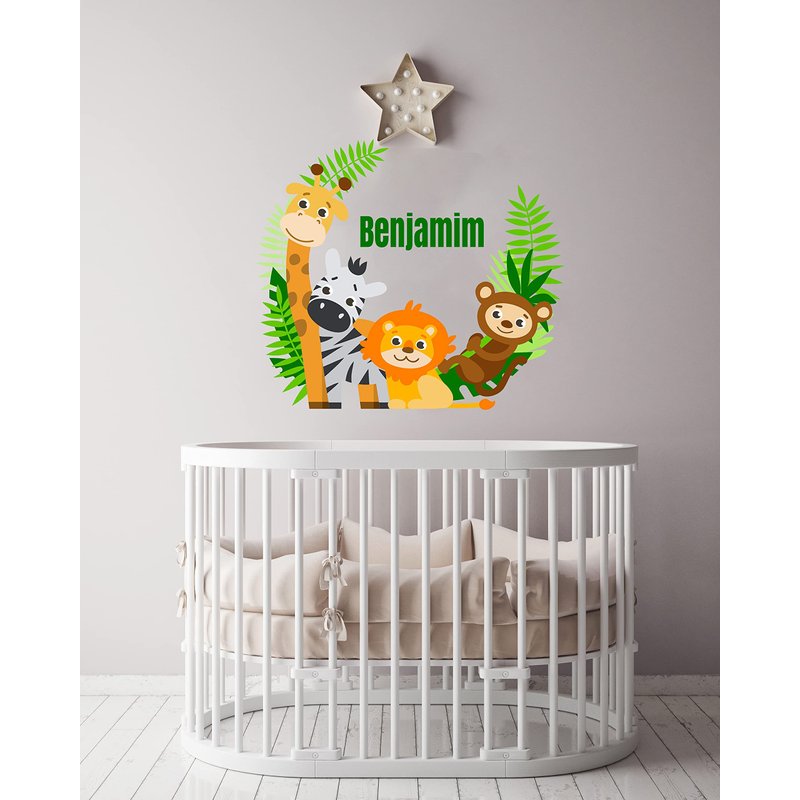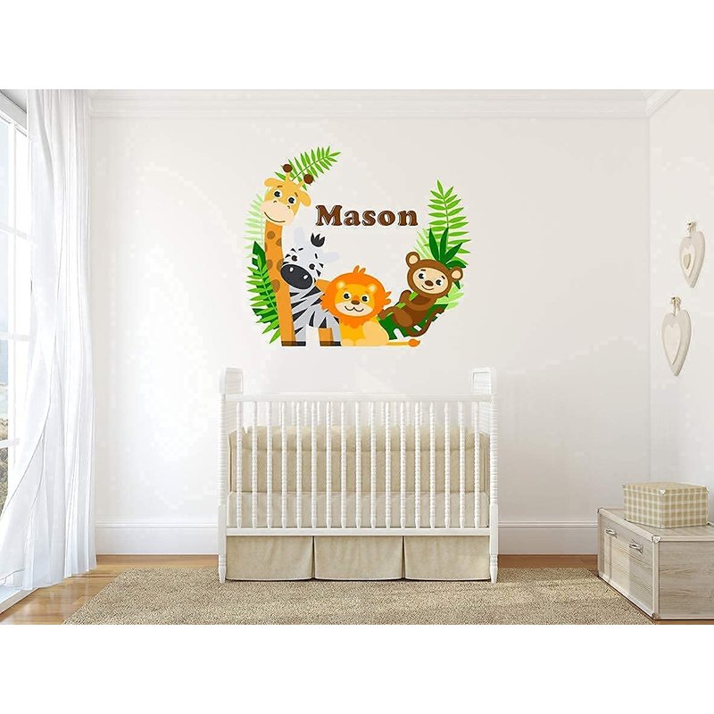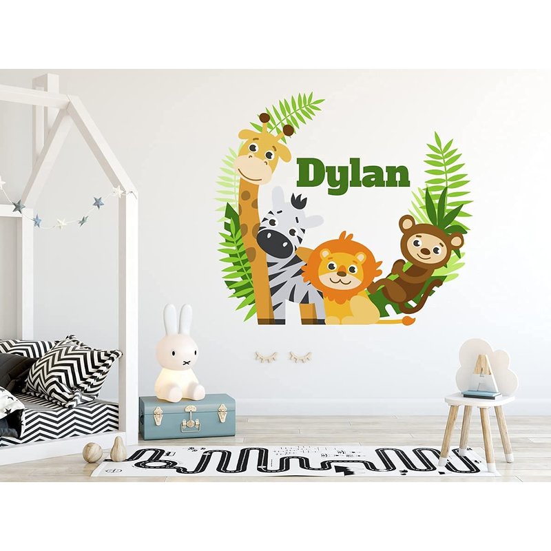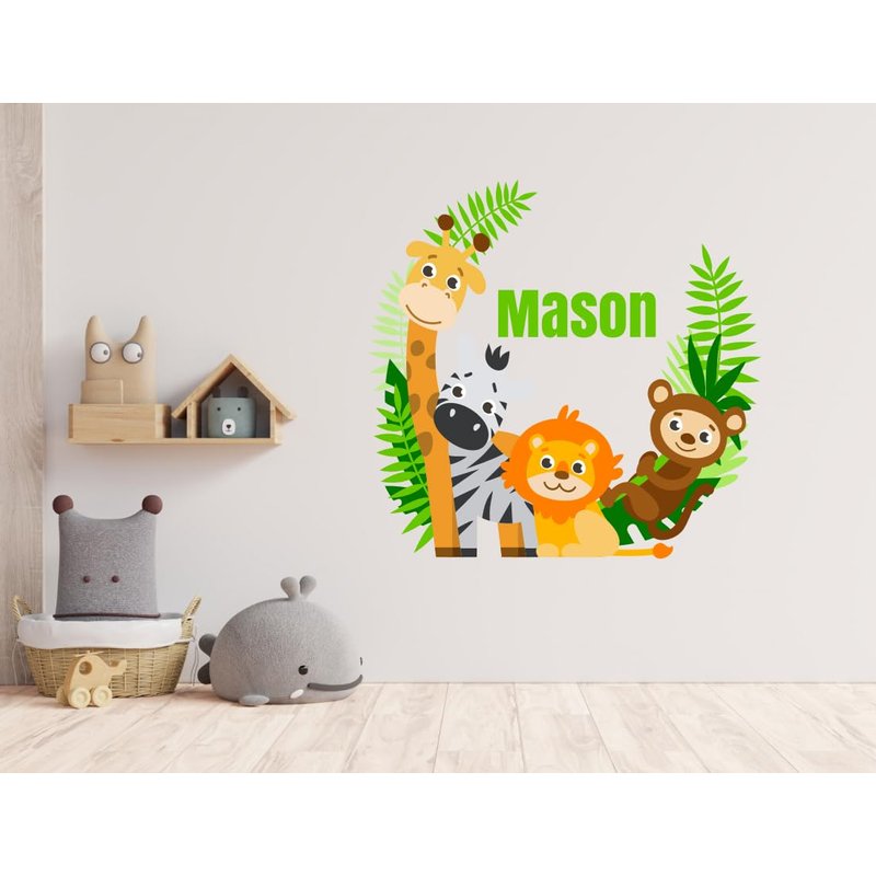 Jungle Animals Custom Name Wall Decal - Baby Safari Animals Series Theme Wall Art Decal - Wall Decal for Nursery Bedroom playroom Decoration (Wide 15"x13" Height)