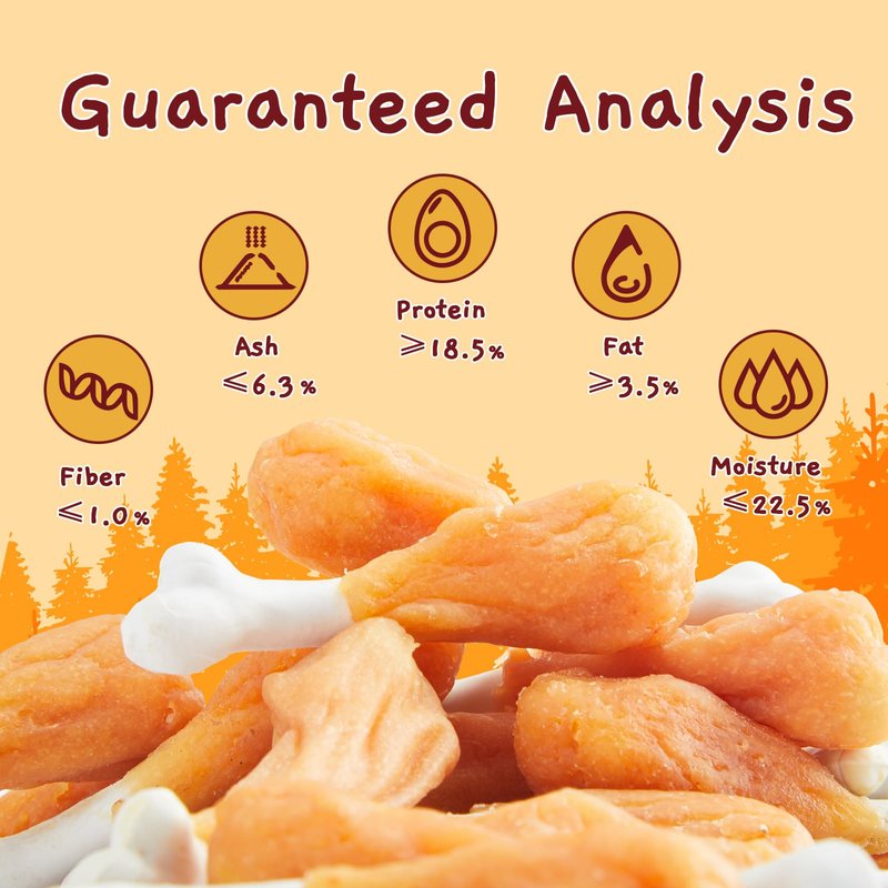 - 【Rawhide Free Chews】Chicken contains soft calcium bones and has a delicious and chewy taste. It helps prevent dogs from chewing on things and also contributes to calcium supplementation.