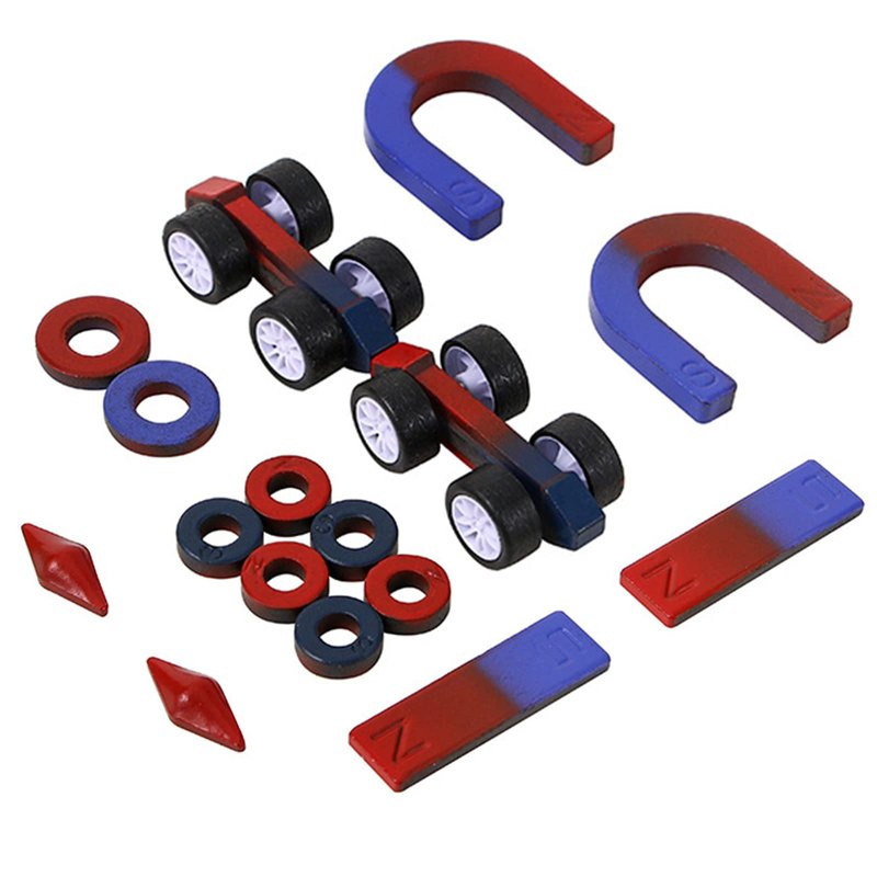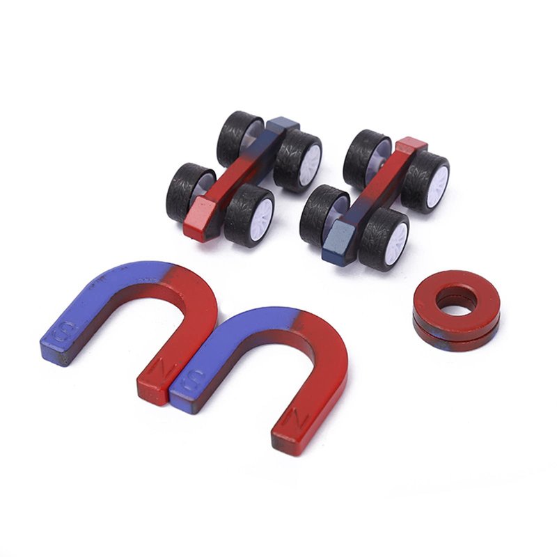 - 【Magnet Beginner Set】This educational magnet toy includes 2 U-shaped magnets, 2 bar magnets, 8 round magnets, 2 toy cars and 2 conical magnets.Children can approach the car with magnets, observe the direction of the car, explore the role of the magnetic field and sense the magnetic field.This magnet set is the perfect toy to improve children's cognitive ability, observation ability, inquiry ability and hands-on ability.