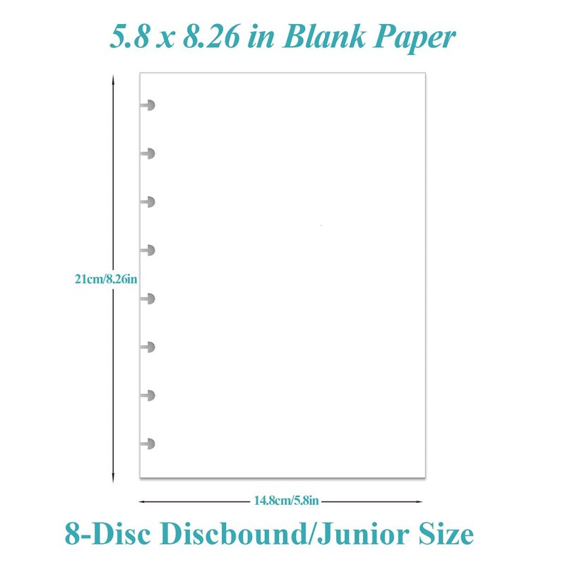 Junior Size Blank Refill Paper, A5 8-Disc Discbound Blank Filler Paper, 100Sheets / 200Pages Blank Paper, 100gsm White Paper, 5.8 x 8.3 in
