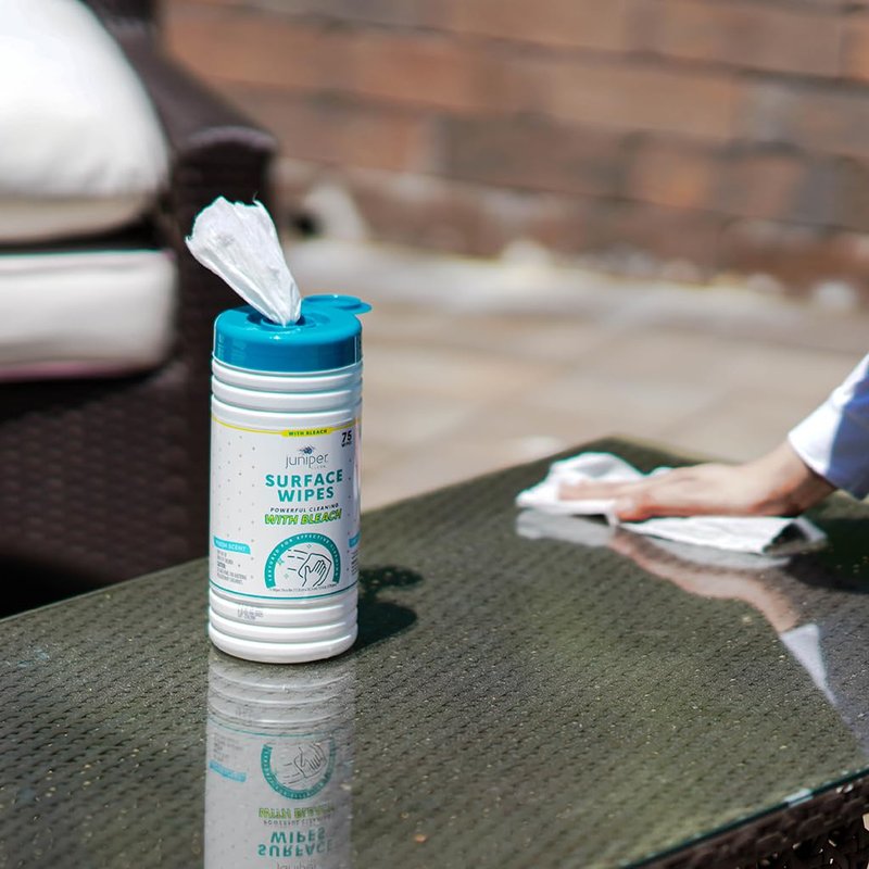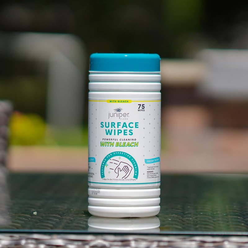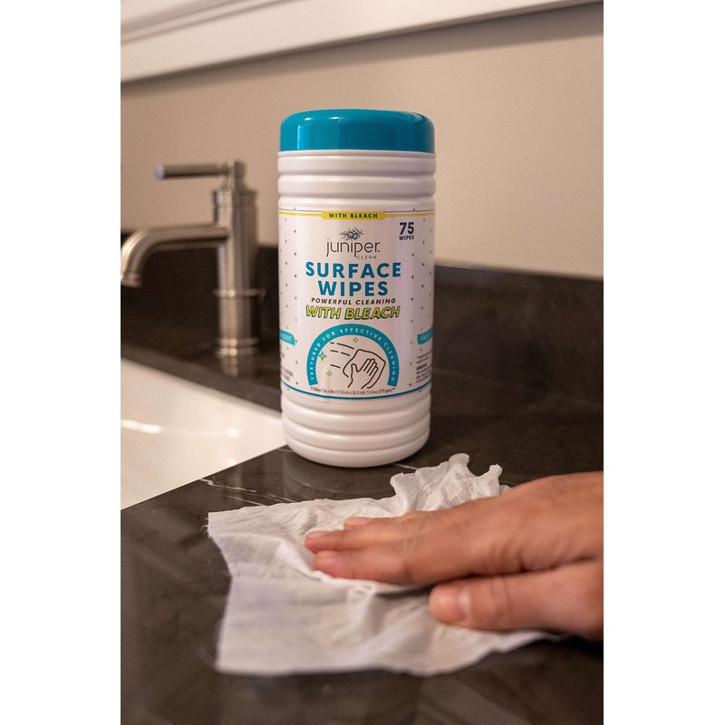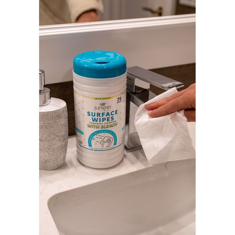 Juniper CLEAN 1 Pack Surface Cleaning Wipes with Bleach, All-Purpose Cleaner for Bathroom, Kitchen, Office, 75 Count Canister, Fresh Scent, Lint Free & Durable