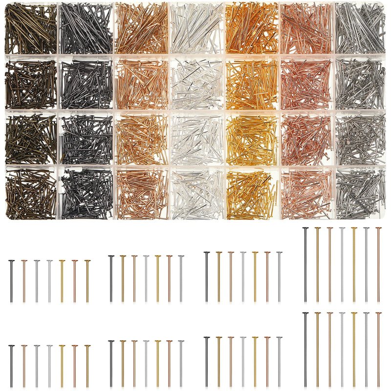 Junkin 2800 Pieces Headpins for Making Jewelry Flat Head Pins Set 0.63 Inch 0.71 Inch 0.79 Inch 1.18 Inch Jewelry Making Head Pins Mix Beading Pins for DIY Jewelry Making (Multicolor)