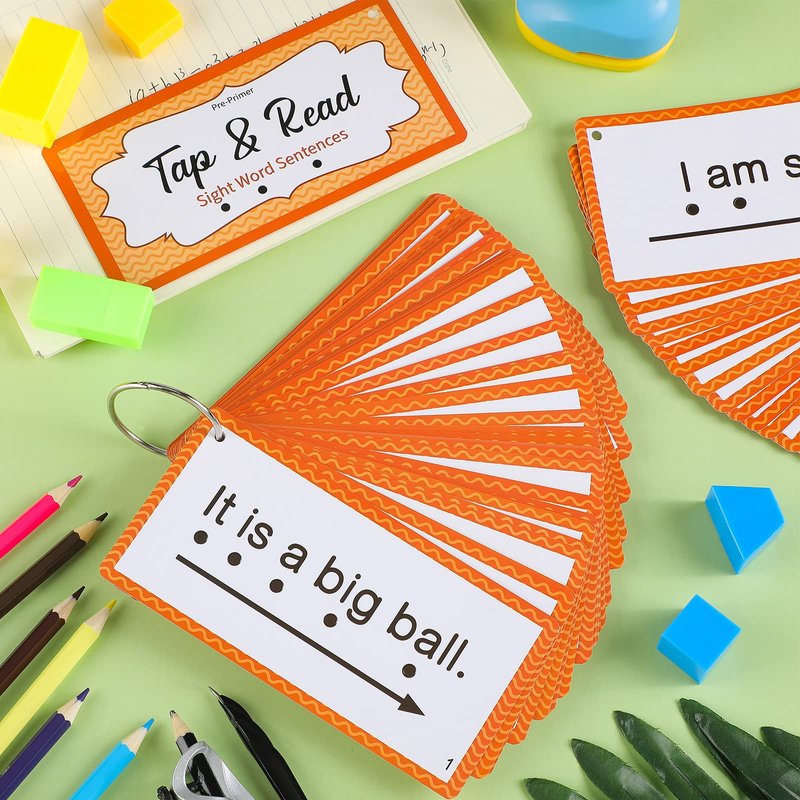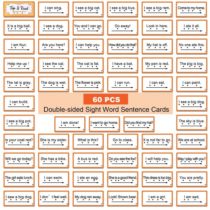 Junkin 60 Pcs Sight Word Sentence Cards Phonics Flash Cards for Kids Kindergarten Preschool, Education Sight Word Games Flashcards for Early Childhood Home School Daily Sentence Building Reading Toy