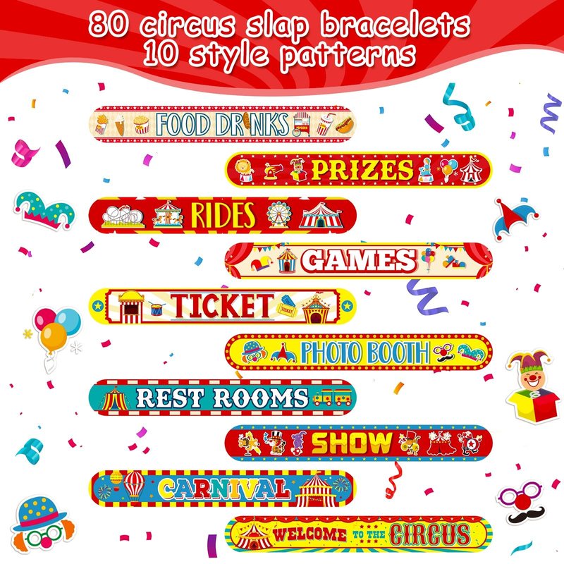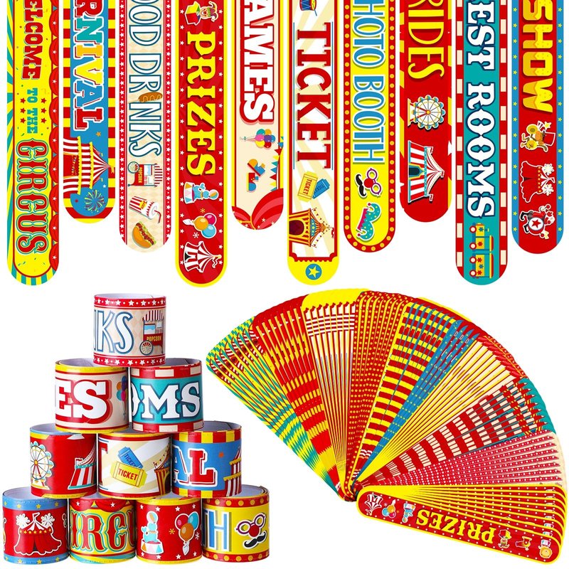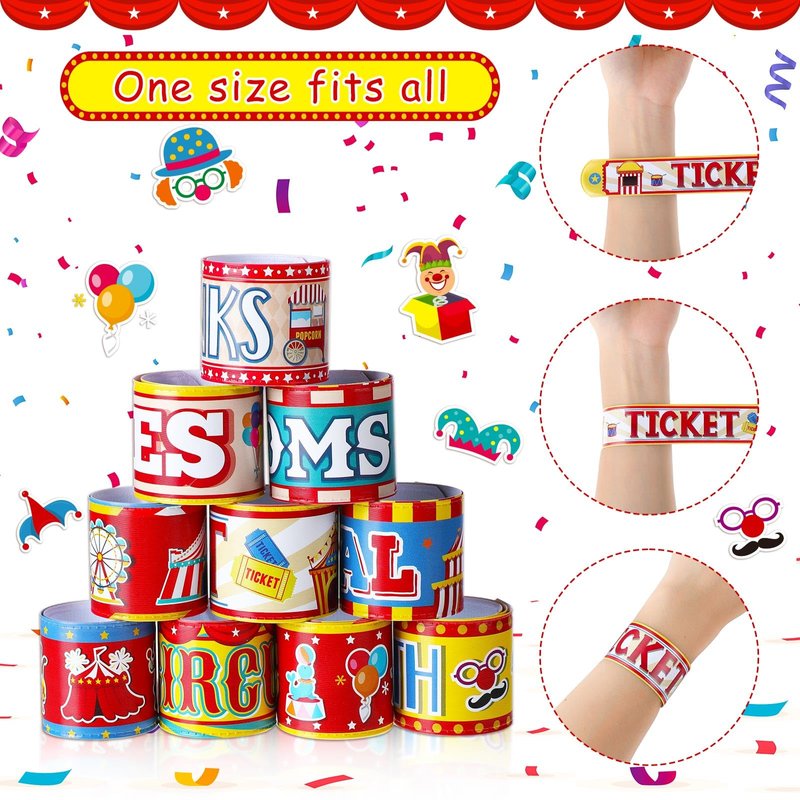 - Circus Carnival Party Supplies: carnival slap bracelets with vivid patterns and bright colors will easy to create a festive atmosphere for your carnival party, adorable and exquisite design will make your circus theme party full of happy and laugh