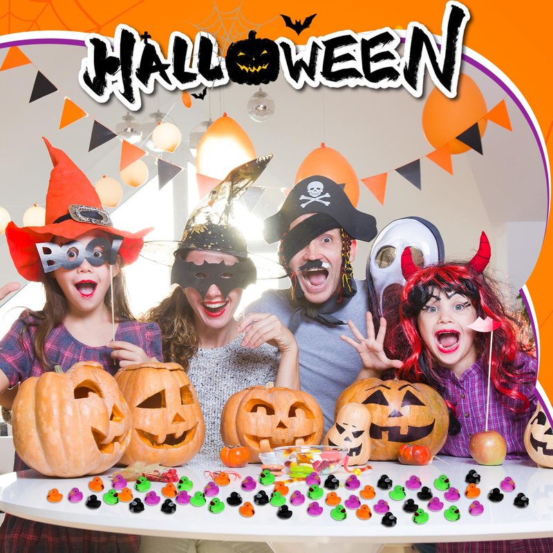 Junkin Halloween Rubber Ducks Bulk 1.57 Inch Mini Rubber Ducks Small Rubber Duck Bulk for Halloween Party Favors(100 Pcs)