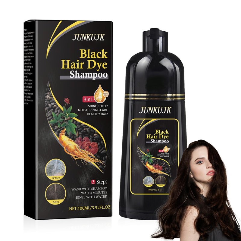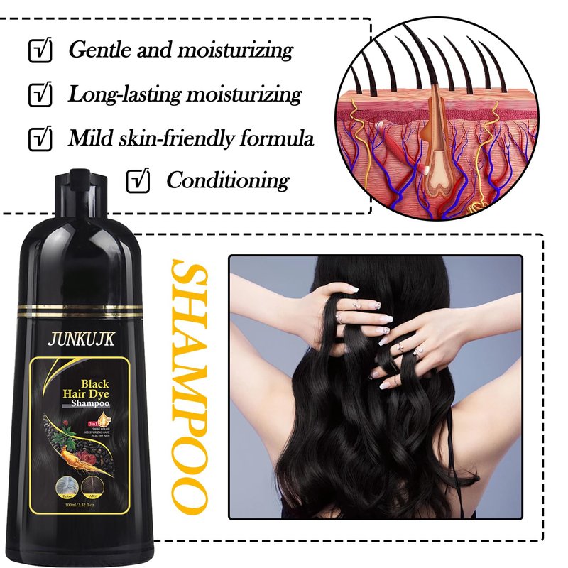 JunKuJK Black Hair Dye shampoo 3 in 1, Black Hair Shampoo for Gray Hair Coverage,Instant Hair Color Shampoo for Women & Men