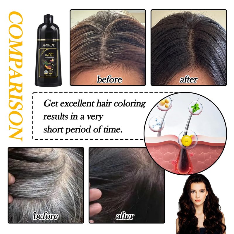 - 🌟【Instant Hair Color Shampoo】Black hair shampoo helps you to color your hair black quickly and effectively so that you don't have to wait for a long time to have dark hair.