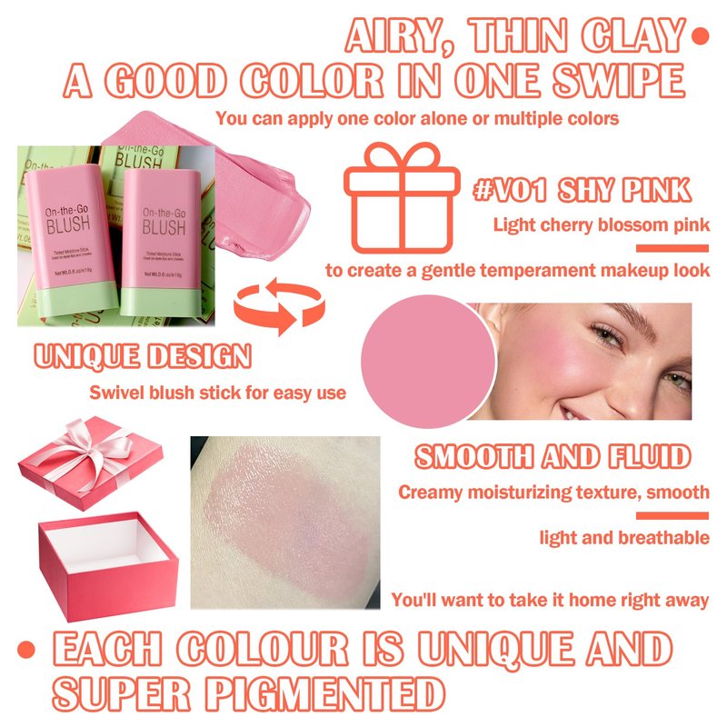 🎁Matte blush stick has a wide range of attractive colors that can be used individually or layered to create a fun, multi-style makeup look. The powder is fine and silky for easy application, and the colors are highly saturated and highly pigmented for a long-lasting finish. Modify and outline your facial contours, make your cheeks more vivid and three-dimensional, comes with a brush brush, easy to apply and makeup use.