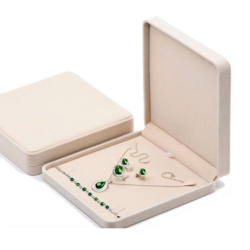 JunningGor Jewelry Set Velvet Box Necklace Earring Ring Necklace Bracelet Gift Display Case Wedding Jewelry Storage Holder (Beige)