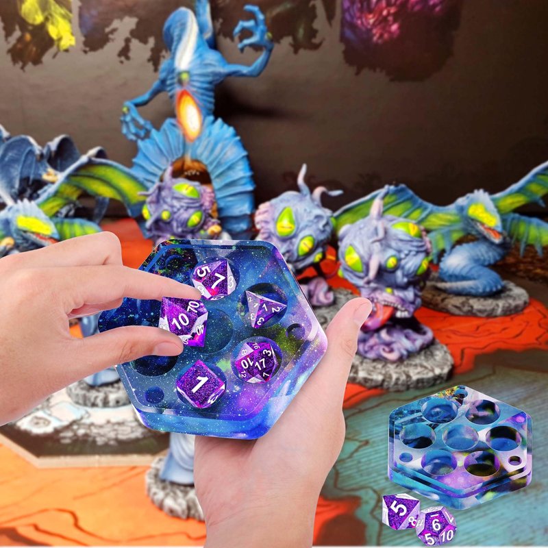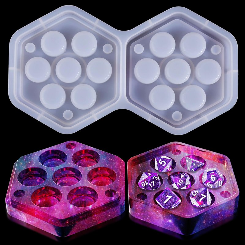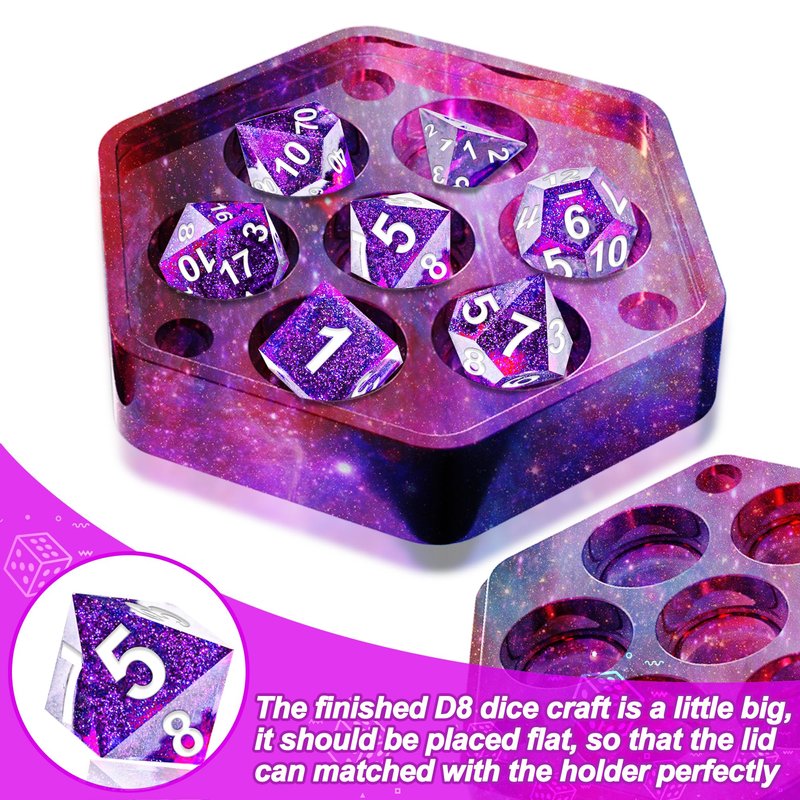 - Dice box molds for resin - Our DND dice box resin mold design with 7 cavities, Each cavity deep enough for holding dices D4, D6, D8, D10 (00-90), D10 (0-9), D12, and D20. Note: The finished D8 dice craft is a little big, it should be placed flat, so that the lid can matched with the holder perfectly