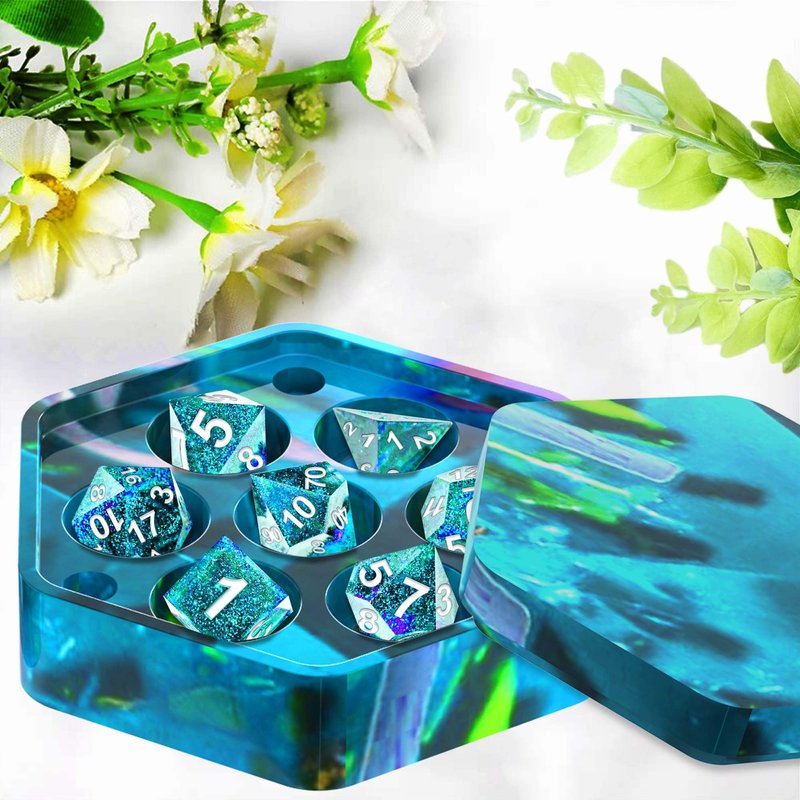 - Package include - You will get 1 set upgraded one-piece dice box resin molds silicone with lid, design with 7 cavities, perfect for DIY dices storage case making, easy and convenient to store your favourite dices