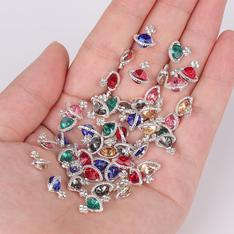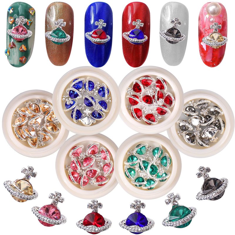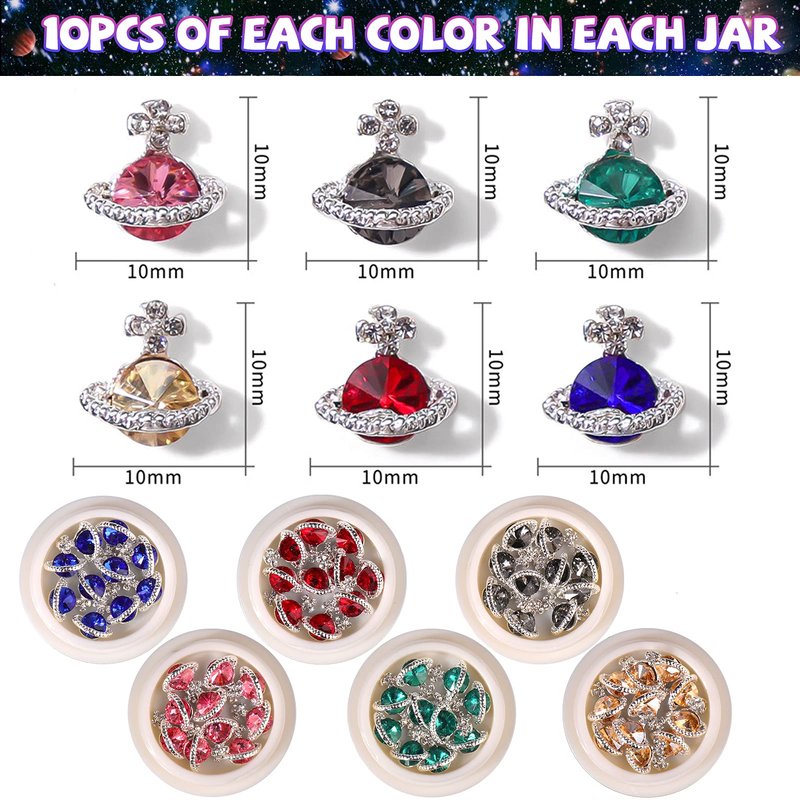 Juome Nail Charms, 60 Pcs Planet Nail Charms 3D Nail Charms with Saturn Shape, Nail Art Decorations Supplies (6 Colors)