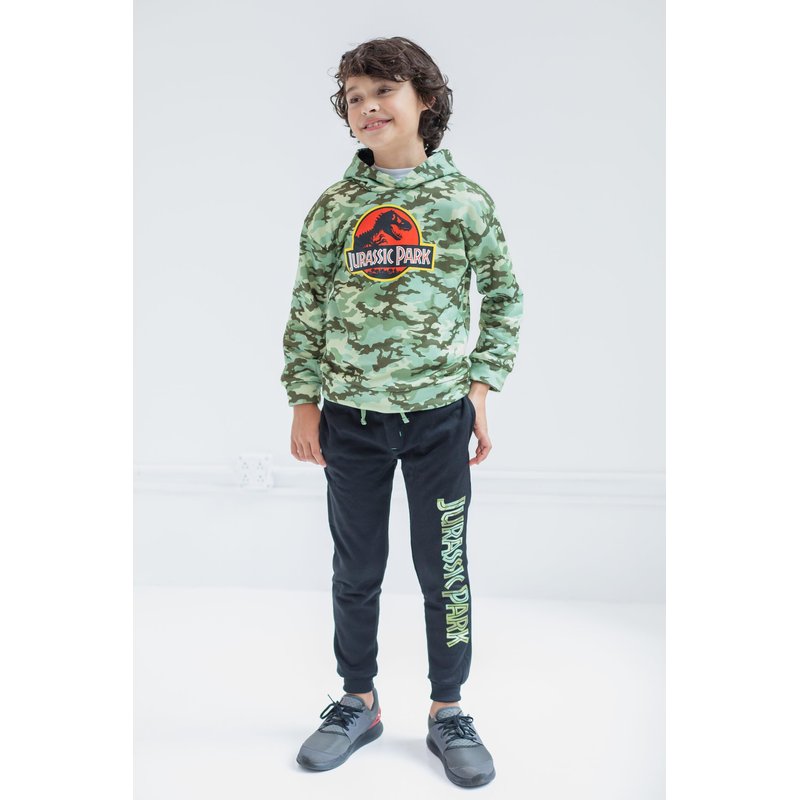 Jurassic World Jurassic Park Little Boys Fleece Pullover Hoodie and Pants Outfit Set Camo Black/Green 7-8