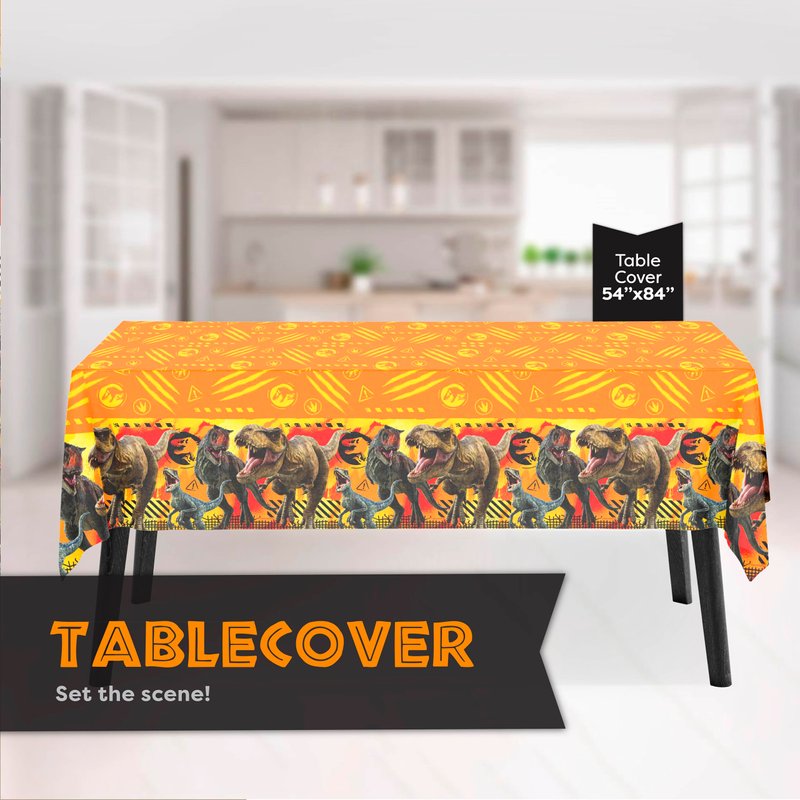 - Decorations -- The Jurassic World tablecloth measures 54" x 84", and should fit most six person dining tables comfortably.