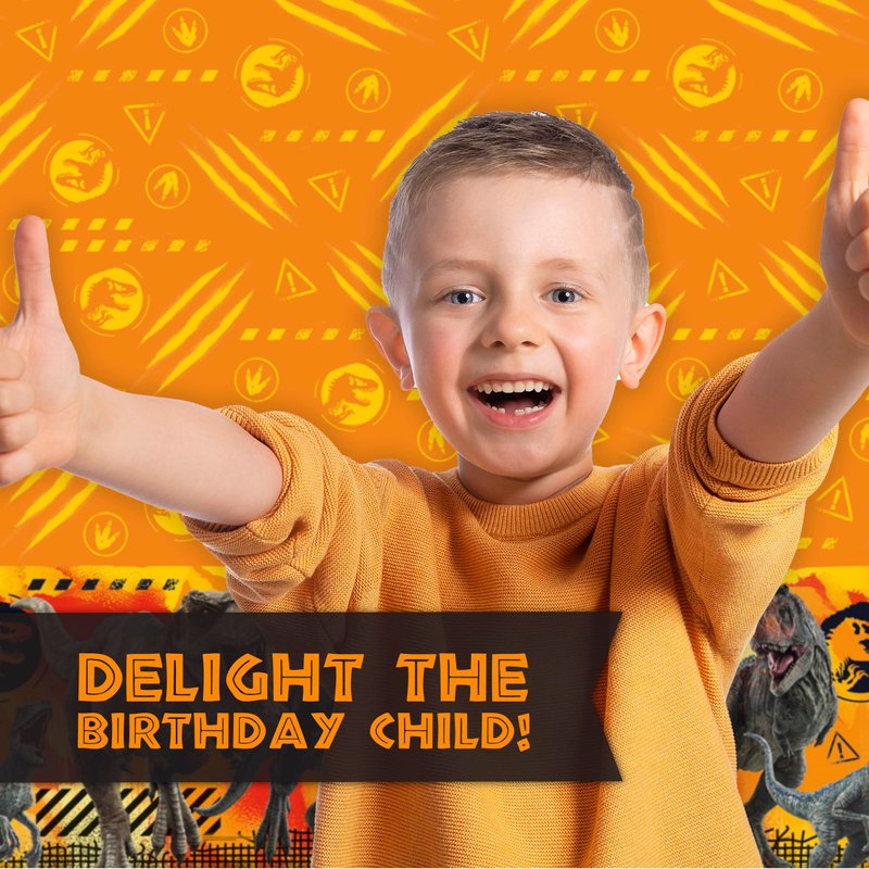 Make everyone's favorite dinosaurs the focus of a fun birthday party ! The Jurassic World Birthday Party Supplies kit contains everything you need for easy, fast setup and takedown. This Jurassic Park party decorations pack includes more than just disposable dinnerware--it also has festive decorations perfect for tying the room together and an It's My Birthday! button for the guest of honor.
