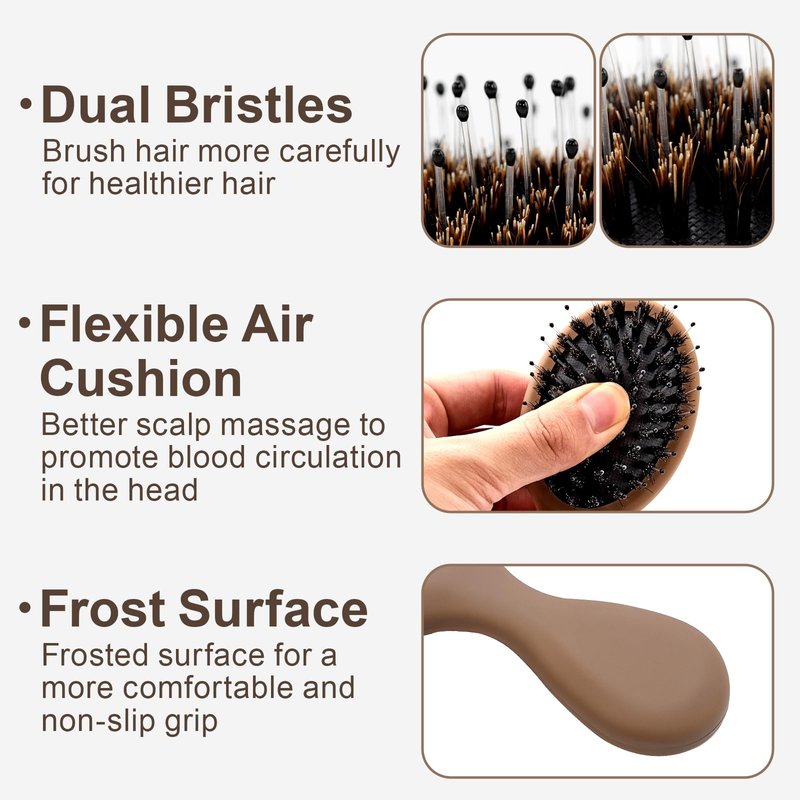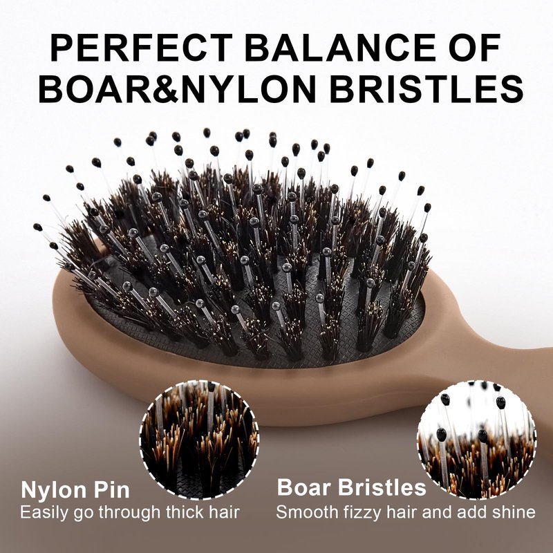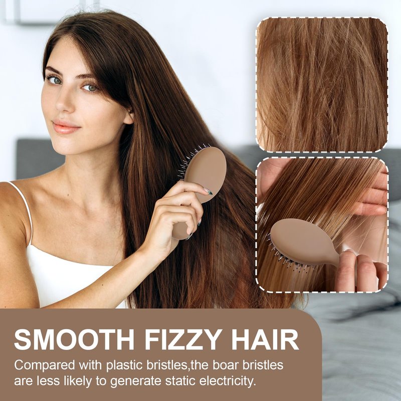 - 【Hair Care】The boar bristle can distribute natural oil from scalp to the tip of the hair,which can prevent hair from drying out.And the boar bristles are less prone to static electricity.Daily uses will effectively smoothes frizzy hair and adds shine.