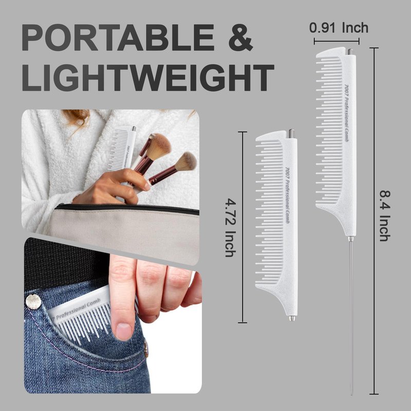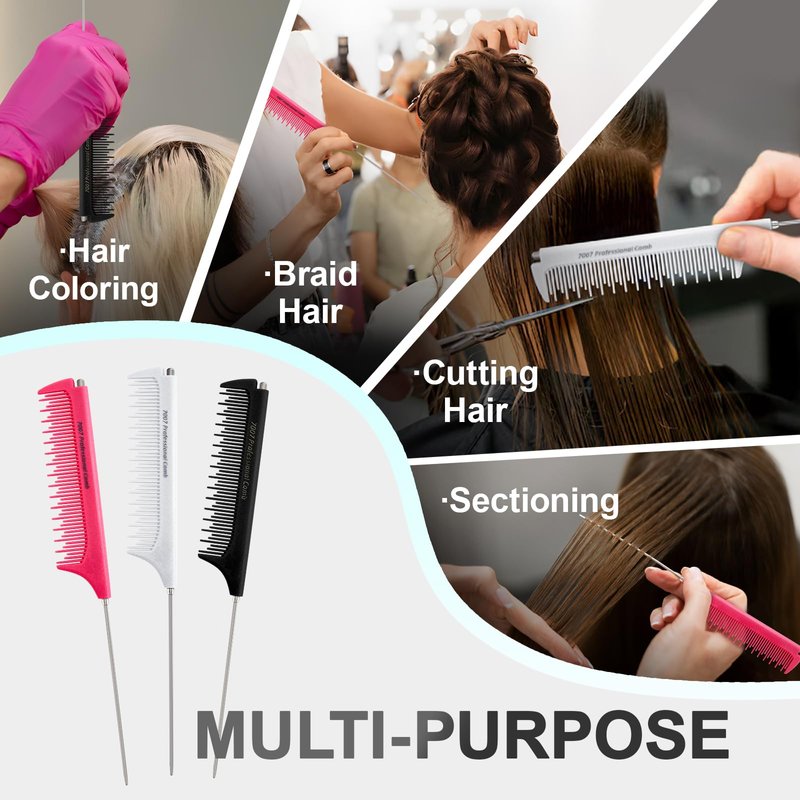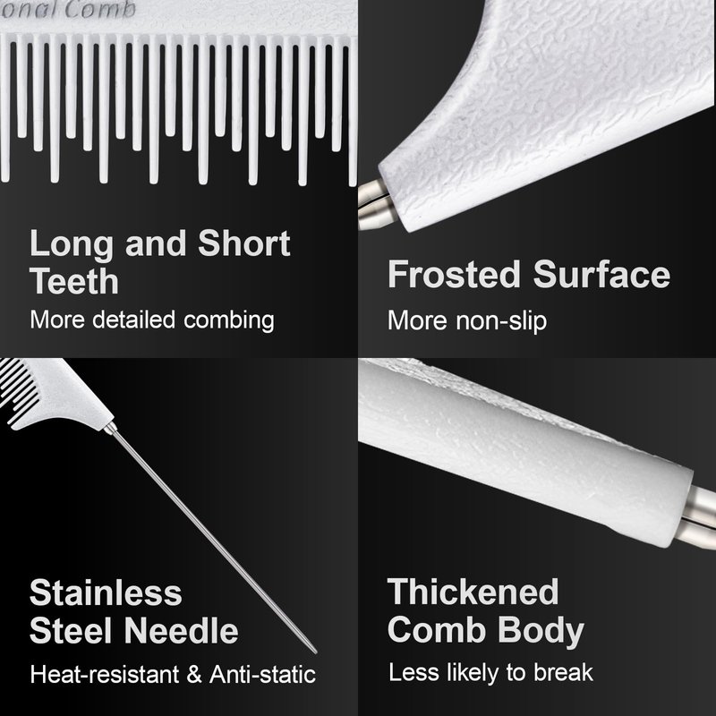 - 【Multi-Purpose】The fine tooth teasing comb have wide applications.Such as braided hairstyles,hair cutting,sectioning,back combing,weaving,hair coloring.Suitable for Salon and Home.Easily create the hairstyle you want