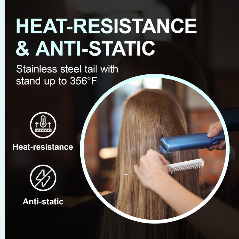 - 【Retractable Pin Tail】The parting comb is only 4.72 inches when the long tail is retracted.It's very compact and lightweight that it can easily fit in your bag or purse to detangling your hair anywhere,and it's also great for travel