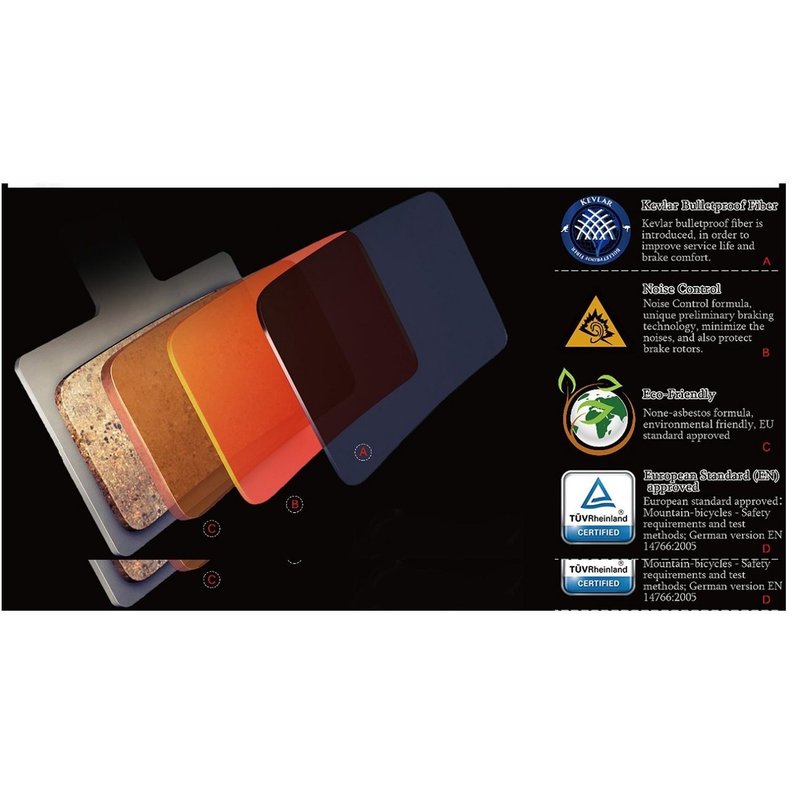 The Mountain Bike Disc Brake Pads have stood up to rigorous testing by TUV Rheinland with approved EU Standards for mountain bicycle safety requirements.