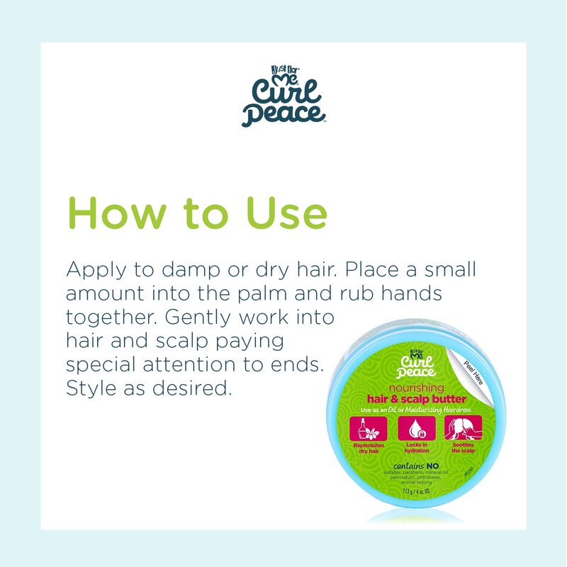 - PROVEN HAIR CARE - Just for Me Curl Peace Nourishing Hair & Scalp Butter is perfect for soothing scalps & hydrating kinks, coils & curls. The unique blend of ingredients nourishes & conditions hair to seal in moisture; promoting healthy natural hair.