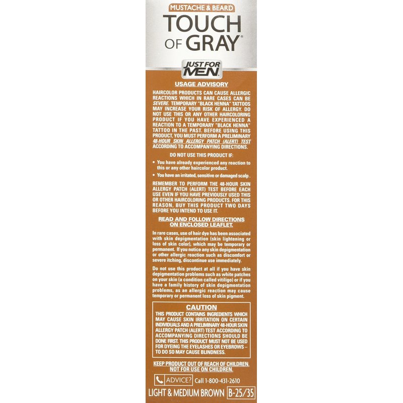 JUST FOR MEN Touch of Gray Hair Color, Mustache & Beard Kit, Light & Medium Brown B-25/35, 2 Count (Pack of 1)